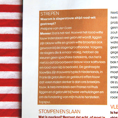 Echt heel erg leuk vind ik dat ik nu het antwoord weet op mijn vraag waarom slagerstouw altijd rood-wit gestreept is: