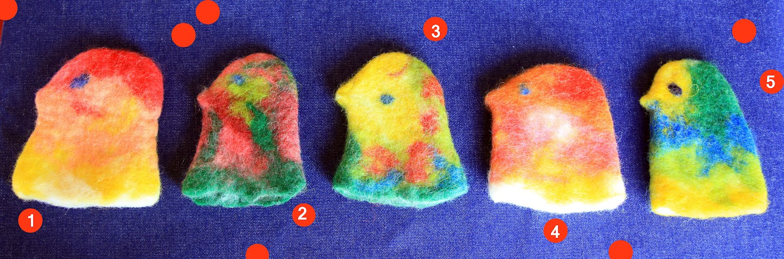 Ze zijn hand made in Holland, 100% gevilte wol en maar € 12.50 per stuk (incl. verzendkosten). Te bestellen via wb.art apestaartje versatel.nl Geef je met het nummer aan welke je zou willen hebben? Klik op onderstaande afbeelding voor de nummers bij de kuikens.