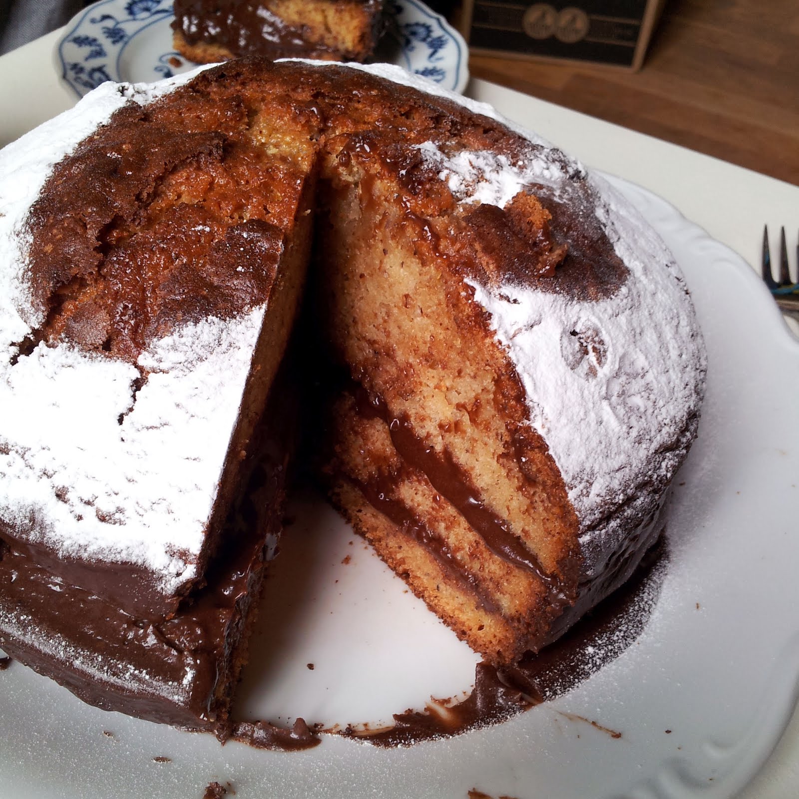 Hazelnootyoghurttaart met ganache van chocolade en crème de marron
